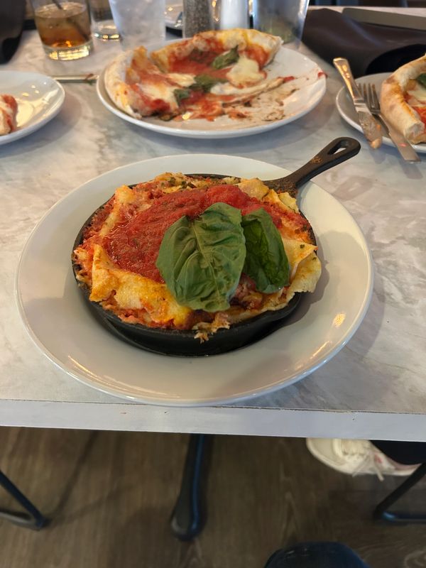 Piatto pizza is served as a traditional "knife and fork" style personal pizza